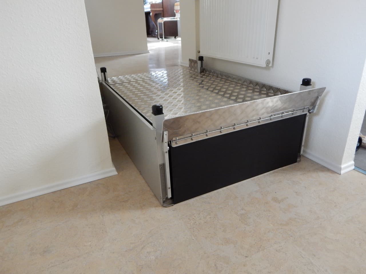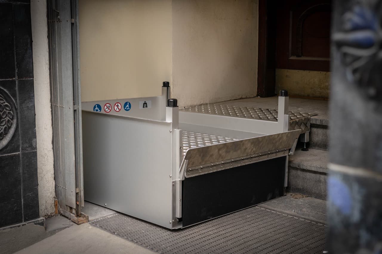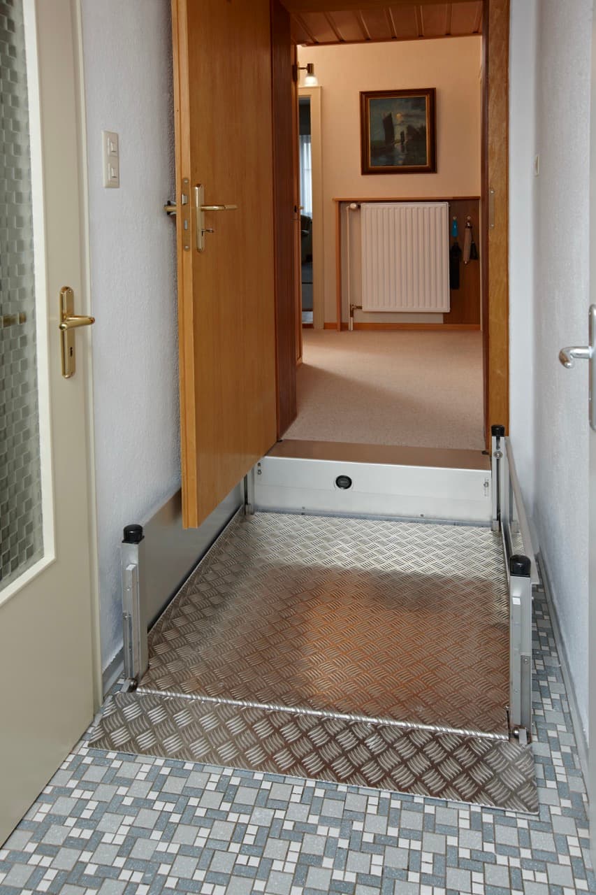 Der Hebelift mini ist unsere platzsparende Hebelösung für kleine Höhen bis ca. 80 cm. Besonders geeignet für Eingänge mit wenigen Stufen, Innenhöfe, Terrassen oder den Übergang vom Wohnraum zum Garten. Wo keine Rampe passt oder ein barrierefreier Zugang schnell und komfortabel umgesetzt werden soll, bietet der Hebelift Mini die ideale Alternative – leise, sicher und unkompliziert in der Handhabung.